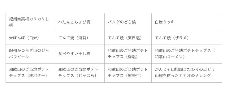 ご当地ポテトチップスや干し柿など、和歌山の地場産品を販売。東京の方に和歌山の味を知っていただく機会にします。日本で和歌山県北山村にしか自生していない柑橘系果実「じゃばら」のピールなど、珍しい特産品もご用意。