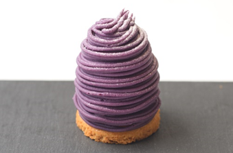 沖縄の島の恵みをふんだんに受けた紅芋を使用したモンブラン。大きくカットした紅芋とガレット、メレンゲを閉じ込め、全ての食材がないと完成しないこだわりのモンブランに仕上げ、紅芋本来の自然な甘さが合わさった絶妙なハーモニーをご堪能ください。