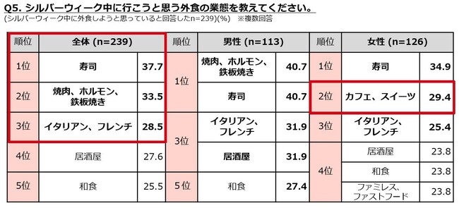 連休はカレンダー通り3連休が最多、女性の行きたい飲食店は「カフェ・スイーツ」がランクイン