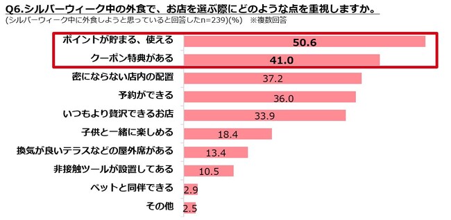・店選びの重視点は「ポイントが貯まる、使える」が50%。次いで「クーポン特典」が41%。