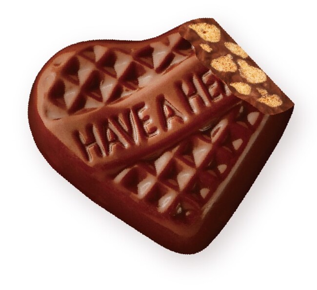 ・ミルクチョコレートに、香ばしい全粒粉入りビスケットをぎっしり詰め込んだハート型のチョコレート