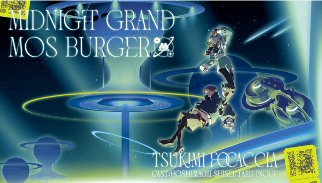 モスバーガー初の月見商品となる「月見フォカッチャ」と、人気VTuber・星街すいせいと音楽プロデューサー・TAKU INOUEの2名による音楽プロジェクト「Midnight Grand Orchestra」による、月をテーマとしたコラボレーションCM。架空の月面世界を舞台に、星街すいせいとイノタク(TAKU INOUE)が旅路の途中で空腹を満たすため「月見フォカッチャ」を注文してから受け取るまでの一連のストーリーを描いた高密度アニメーションとなっています。CM内にはパスコードが隠されており、そちらを特設サイト上で入力すると、オリジナルのデジタルコンテンツが見られる仕掛けも用意されています。