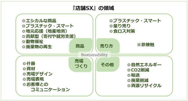 スコープが考える店舗SX(Sustainability Transformation)は下記の領域です。