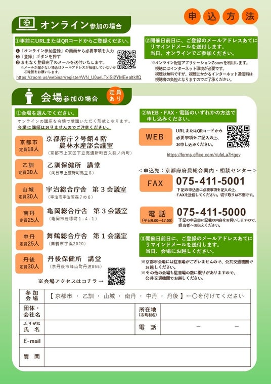 オンライン・会場参加どちらも参加は無料ですが、事前の申し込みが必要です。