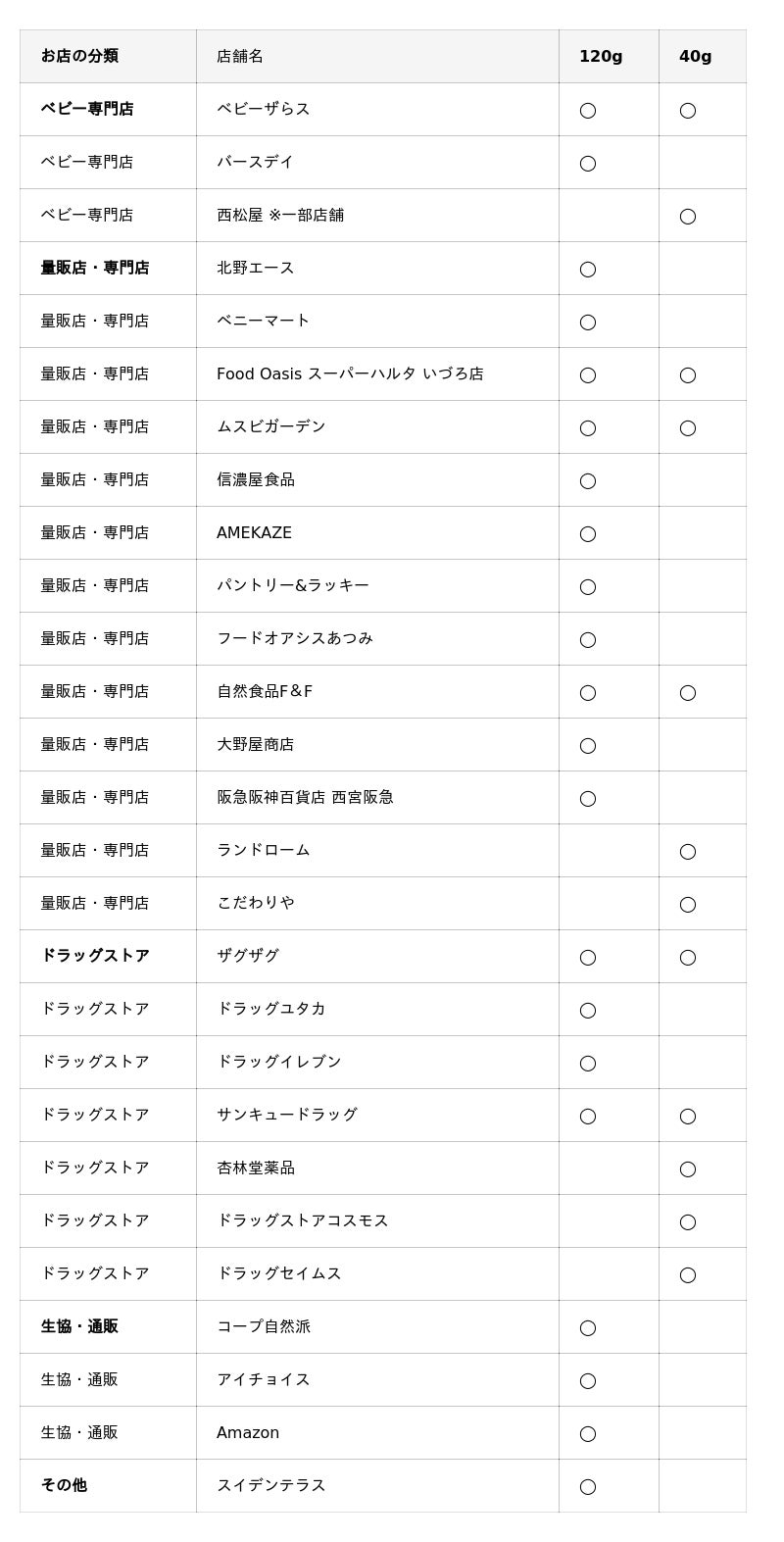 40gサイズは2025年9月16日の発売開始。すでに多数の店舗で採用が決定しており、ベビー専門店やドラッグストアを中心に、全国3000店舗以上での展開を予定しています。今後、さらに多くのお店でお手に取っていただけるよう、販売網を広げてまいります。