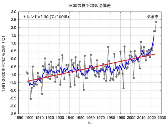 *4: 気象庁「日本の夏(6~8月)平均気温偏差の経年変化(1898~2025年)」