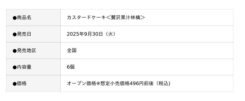 本商品は、従来品の2倍(*1)ものソースをたっぷり閉じ込めた、ふじりんご(*2)の贅沢な味わいが楽しめるカスタードケーキです。ひとくち召し上がると、林檎(りんご)の甘みと香りが口いっぱいに広がり、とろ~っと溢れ出すソースが至福なひとときを演出します。“プチ贅沢消費”や“おうちカフェ需要”が高まる中、秋のティータイムやリラックスタイムにぴったりの一品です。