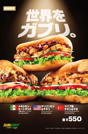 サブウェイ流、世界の旨辛サンド3種が登場!