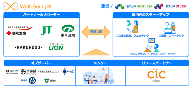 『Well-BeingX』は、業種を超えた企業と世界中の優れたスタートアップとともに「多様なウェルビーイングの実現」に向けて事業共創する、グローバル事業共創プログラムです。