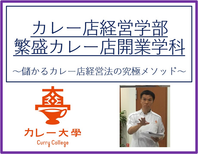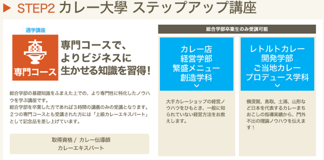 内 容 :カレー基礎知識を幅広く学ぶ「カレー大學総合学部」とカレー店の店舗開発から開業までの専門的な