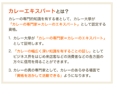 <特典>受講終了した方は「カレーエキスパート」資格が取得できます。