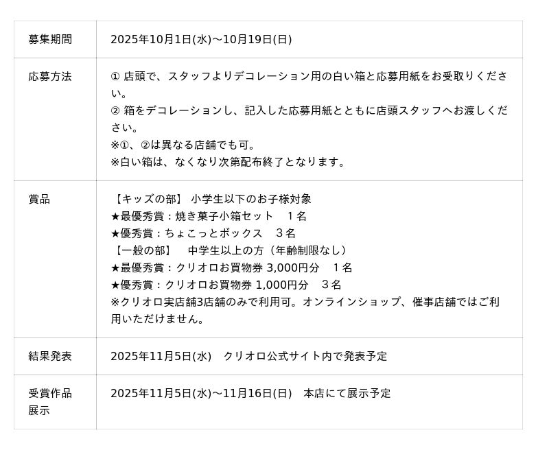 クリオロ実店舗各店では、「パッケージイラストコンテスト」を開催いたします。