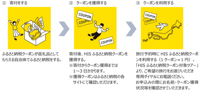 【HISふるさと納税クーポン利用の流れ】