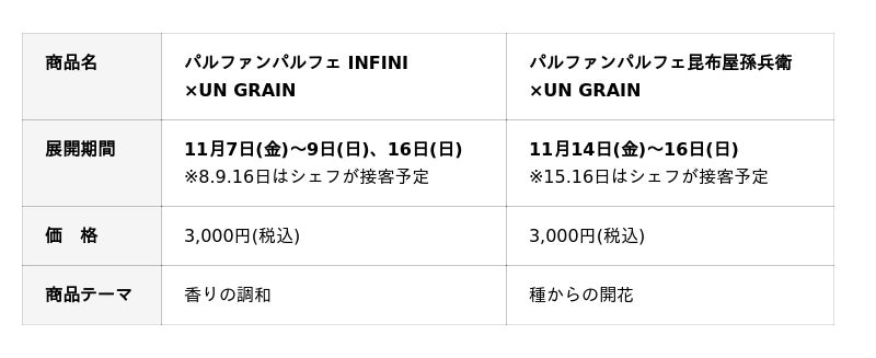 ■第一弾 ~UN GRAIN卒業パティシエとのコラボパフェ~ ※終了※■第二弾 ~ufu.フェスイベントへの出店~