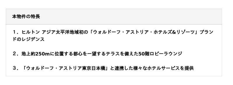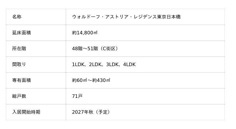 ■「ウォルドーフ・アストリア・レジデンス東京日本橋」物件概要