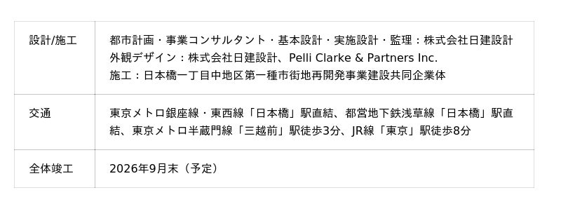 三井不動産レジデンシャル株式会社(本社:東京都中央区、代表取締役社長:嘉村 徹 以下、三井不動産レジデンシャル)とヒルトン(本社:米国バージニア州、取締役社長 兼 最高経営責任者 クリストファ J. ナセッタ)は、三井不動産株式会社(本社:東京都中央区、代表取締役社長:植田 俊)が参加組合員として参画・推進している「日本橋一丁目中地区第一種市街地再開発事業」(以下、本プロジェクト)において、三井不動産レジデンシャルが事業推進する賃貸レジデンスについて契約を締結し、レジデンスの名称を「ウォルドーフ・アストリア・レジデンス東京日本橋」(以下、本レジデンス)とすることを決定しました。本レジデンスはヒルトンの最上級ラグジュアリーブランド「ウォルドーフ・アストリア・ホテルズ&リゾーツ」の名を冠したアジア太平洋地域初(※1)のレジデンスとなり、入居開始は2027年秋を予定しています。