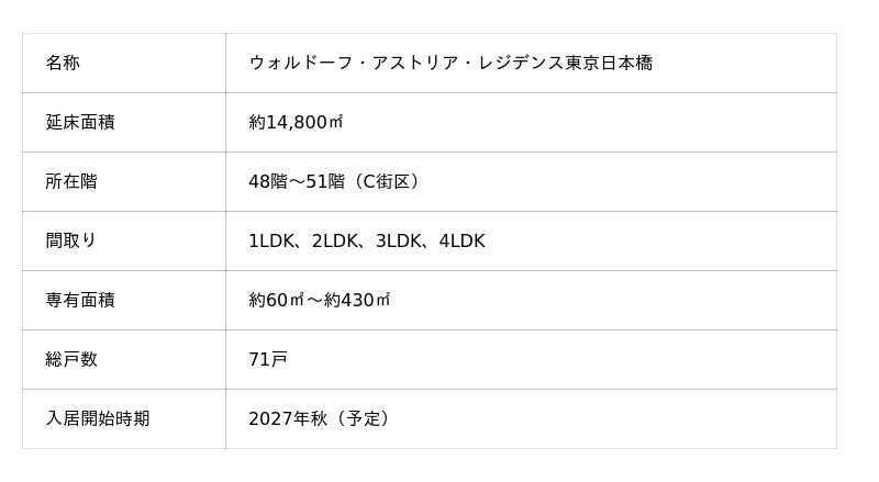 ■「ウォルドーフ・アストリア・レジデンス東京日本橋」物件概要