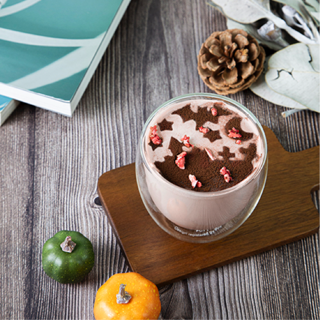 チョコレートとエスプレッソのハーモニー、甘酸っぱいストロベリーが香る、ハロウィン限定のカフェモカです。