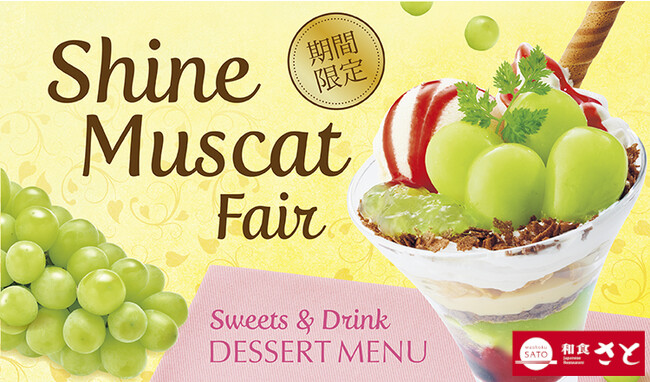国内207店舗を展開する「和食さと」では、今が旬のフルーツ「シャインマスカット」を使用した季節限定のデザートメニューを9月15日(木)から10月下旬まで期間限定で販売します。
