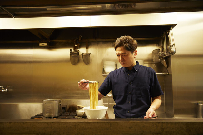 スープは、自分の地元会津の地鶏を?倍に増量し、羅?昆布のだしを合わせ、繊細ながらも力強く仕上げました。麺は、しなやかさに加えて伸びにくさと食べ応えを実現させるべく、形状から見直しました。