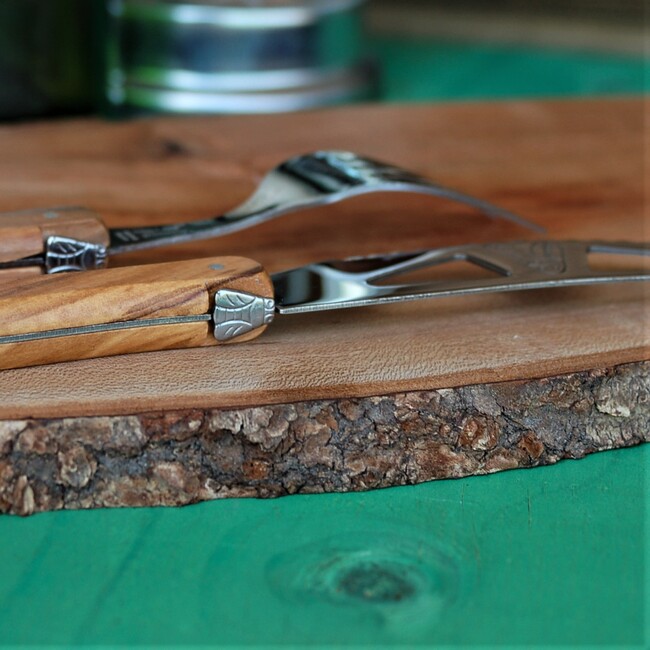 ハンドルは欧州産天然オリーブ無垢材を使用
