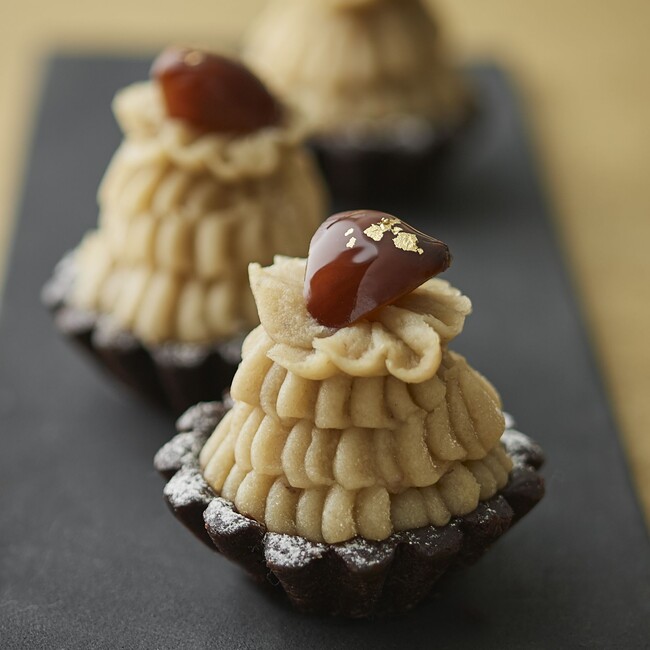 小布施の栗を使った濃厚なマロンクリームとクリームがまろやかに調和。アーモンドクリームを絞ってから焼き上げることで旨みを染み込ませ、タルト生地のサクッとした食感をプラスした、新作のモンブランタルトがお目見え。