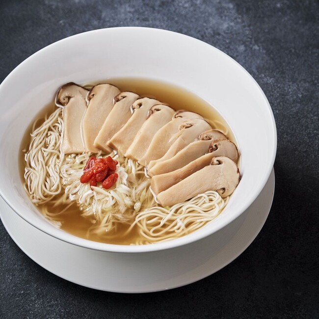 唐シェフの新しいセンスが吹き込まれたシンプルでモダンな上湯麺は、中国ハム、牛スネ肉、豚スネ肉、丸鶏を8時間かけて、じっくり丁寧に炊き上げて作る極上のスープが味の要。希少性の高い雲南省産の松茸の香り高い風味を思う存分に堪能して。
