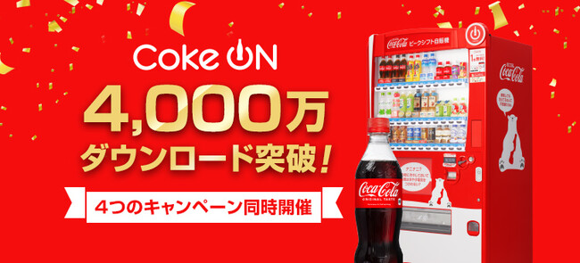 このたびの「Coke ON」アプリ4000万ダウンロード達成を記念して、日頃ご愛顧いただいている皆様に感謝を込めて、「Coke ON」アプリと「Coke ON」公式Twitter(@CokeON)において、おトクな4つのキャンペーンを9月16日(金)から10月31日(月)までの期間開催します。