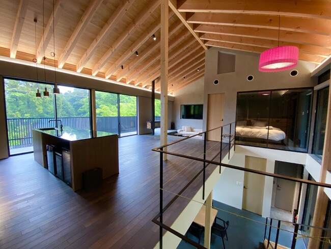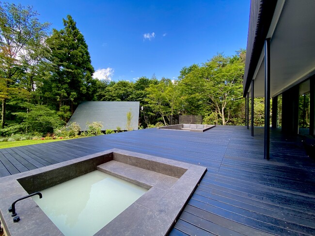 MONS GORAは約200平米の屋内、外には約100平米のウッドテラスが広がっている一棟貸しのホテルです。全てのプランには、旬の食材を厳選したご朝食をご用意しております。ウエルカムドリンクにはGORAビールと厳選したスパークリングワインをご提供致します。各棟には心地よい香りの檜風呂の半露天風呂があり、かけ流しの大涌谷白濁温泉が,贅沢なほど注がれています。