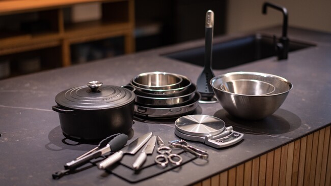 更に、お好みの料理スタイルに対応できるよう、ル・クルーゼ等の調理器具や食器類、カトラリーなど多様な道具をご用意。明るく開放的な空間で、グループや家族と一緒に料理を作りながら、大切な人々との想い出に残る特別なひとときを過ごすことができます。
