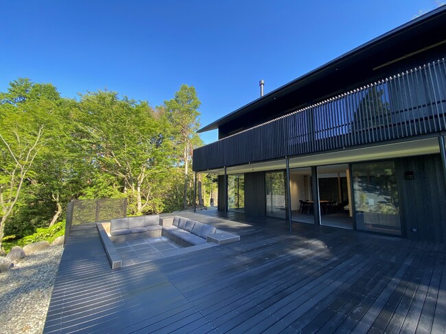 約100平米のウッドテラスは、風にそよぐ木々の葉、花々の香り、そして太陽の温かな光が、