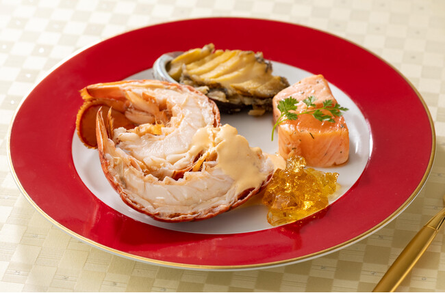 お正月にふさわしく、殻つきのオマール海老を詰めました。カクテルソースとの相性が抜群です。
