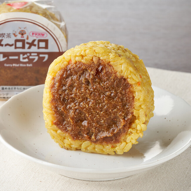 【特長】東海地方の純喫茶で提供される「カレーピラフ」をイメージしたおむすびです。豚ミンチ、玉ねぎ、にんじんなどを入れた、懐かしい味のカレーピラフに、豚ミンチと玉ねぎを一緒に煮込んだ少し甘めのカレーソースを合わせました。名古屋の食品メーカー「オリエンタル」のカレー原料を一部使用しています。