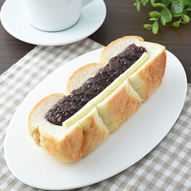 【特長】厚切りの「小倉トースト」をイメージし、厚みのあるふんわり、やわらかいパンに北海道産小豆の小倉あんとマーガリンをトッピングしました。
