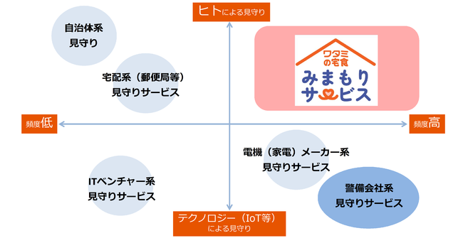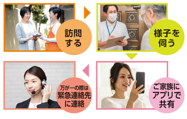 「ヒト(担当スタッフ)」が、「高頻度(毎日)」ご自宅にお伺いしコミュニケーションをとることで、SNS等のネット情報が過多になっている現代において、安心感の高いサービスを提供いたします。