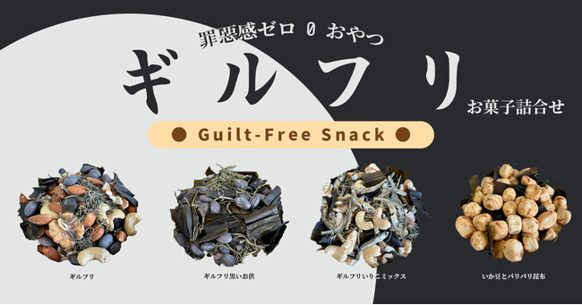 「ギルト(罪悪感)」と「フリー(ない/とらわれない)」を組み合わせた「罪悪感を抱かない」という意味の言葉である。つまり罪悪感なく食べられるお菓子です。