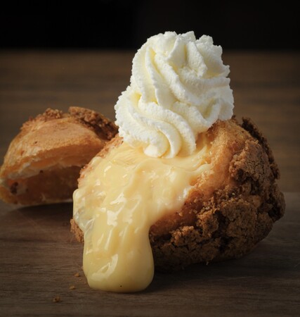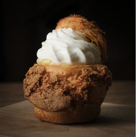 コーンロッシュというフランスのシリアルクッキー生地を上にのせたガリガリ食感のシュークリームです。