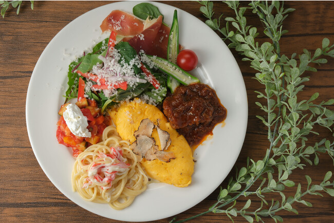 野菜も自然に摂れるような工夫が入っている、贅沢なワンプレートをご用意。