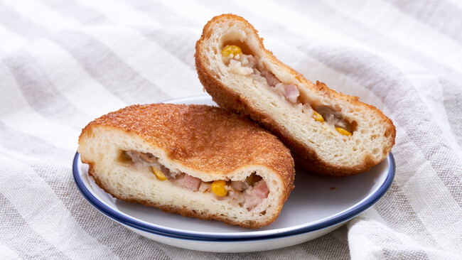 マッシュルーム、ひらたけ、エリンギの3種のきのこを使用したシチューを包んだ揚げパンです。