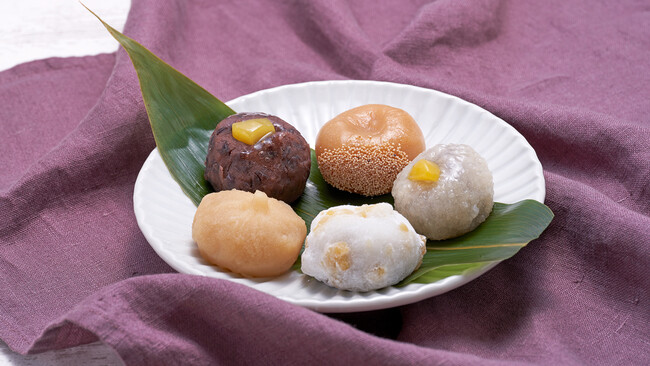 栗おはぎ・栗餅(栗餡)・栗道明寺・栗粒大福(粒餡)・餅入り栗きんとんの5種です。
