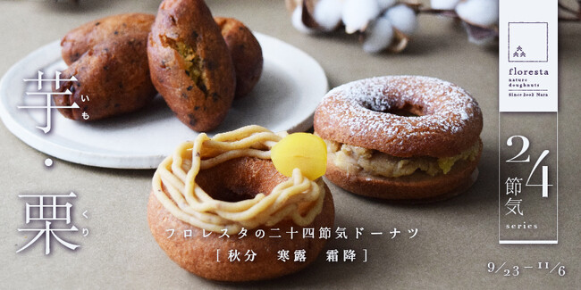 旬を味わう二十四節気ドーナツシリーズの第6弾として9月23日(金)の秋分から「芋・栗」のドーナツを販売いたします。