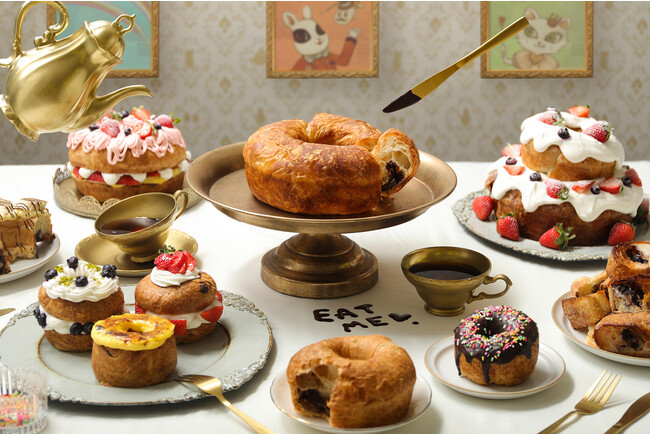 また、店内では看板商品「マジカルチョコリング」をはじめ、パリッと焼き上げたフランスパンの中にとろ~っとしたチーズがたっぷり入った「のび~るとろりんチーズフランス」や、もっちりやわらかな食パンに小豆の粒感を残したほどよい甘さのあんこをたっぷり使用した「あんこはもうたくさん!あんこ中毒な太っちょ王様のあん食パン」などの商品をご用意。まるでおとぎ話に迷い込んだようなマジカルな世界観の店内には、おいしさはもちろんお客さまをワクワクさせる商品をつくりたい、そんな想いのもとに作られたパンやスイーツが並んでいます。