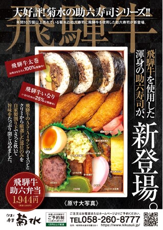年間10万個以上売れている菊水の助六寿司に飛騨牛を使用した飛騨牛助六弁当が新登場。