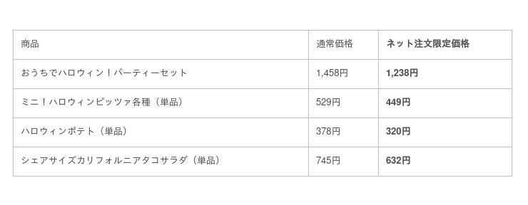 「おうちでハロウィン!パーティーセット」と各単品は、「ネット注文限定!テイクアウト全品15%OFFキャンペーン」の対象商品です。ぜひ、ネット注文でお得に、ココスのハロウィンメニューをお楽しみください。