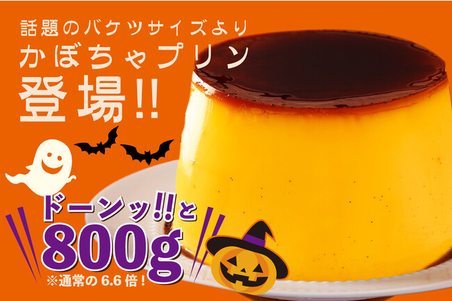 通常サイズ(120g)だけでなく、オンラインショップ限定の『カップdeかぼちゃプリン』(220g)、SNSで話題の6.6倍おばけサイズの『バケツdeかぼちゃプリン』(800g)も登場いたします!!おばけサイズのかぼちゃプリンはみんなで楽しむハロウィンパーティーにもおすすめです!