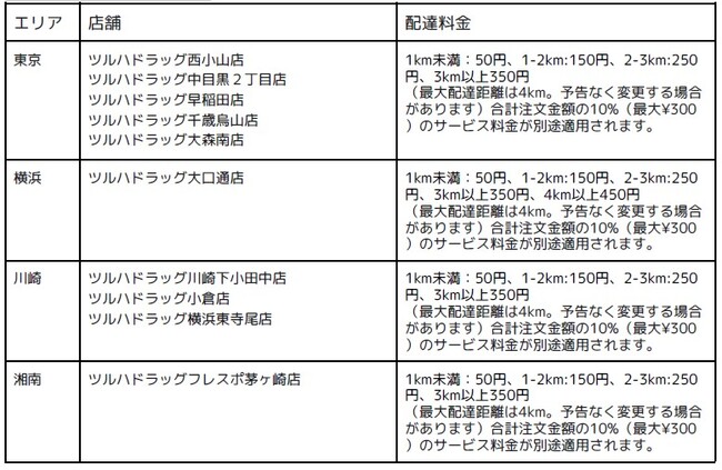 対象店舗:9月26日(月)よりサービス拡大するツルハドラッグ10店舗(下記一覧表参照)