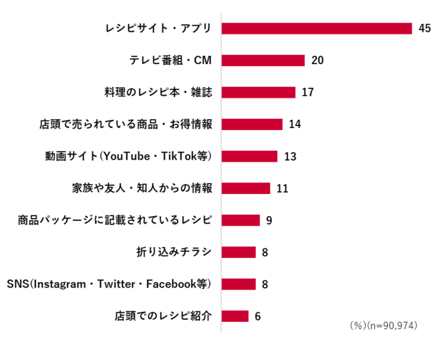 夕食の献立の参考にする情報は「レシピサイト・アプリ」が45%で最多