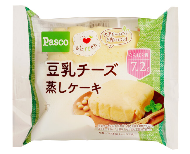 「豆乳チーズ蒸しケーキ」は、豆乳チーズを使用したしっとりとした食感の蒸しケーキです。豆乳チーズとは、生乳の代わりに豆乳を発酵させることでチーズのようなコクと風味をもたせた豆乳加工品です。粒状大豆たんぱくと豆乳チーズを使用し、口どけのよい生地に仕上げました。
