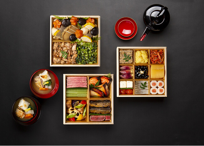 酢重の料理長が信州の食材を中心に、心を込めて1品1品手作りしたおせち。【 壱の重 】は、信州を中心に良質な素材を取り寄せ、味噌や麹などの調味料で旨味を活かして仕上げた祝い肴。【 弐の重 】は、信州の良質なブランド肉や魚介類を使った、「味噌漬け焼き」や「黒酢炒め」など食卓を彩るレストランの人気メニューもご用意。【 参の重 】は、大ぶりのアワビと信州伝統野菜をじっくりと時間をかけて丁寧に仕上げた煮しめ。締めに嬉しい特製おこわと味噌仕立てのお雑煮付き。新しい年の始まりは、「酢重正之」の華やかな三段重と自慢の味噌で仕上げるお雑煮でお迎えください。