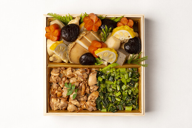 大ぶりのアワビと信州伝統野菜をじっくりと時間をかけて丁寧に仕上げた煮しめ。締めに嬉しい特製おこわと味噌仕立てのお雑煮付き。